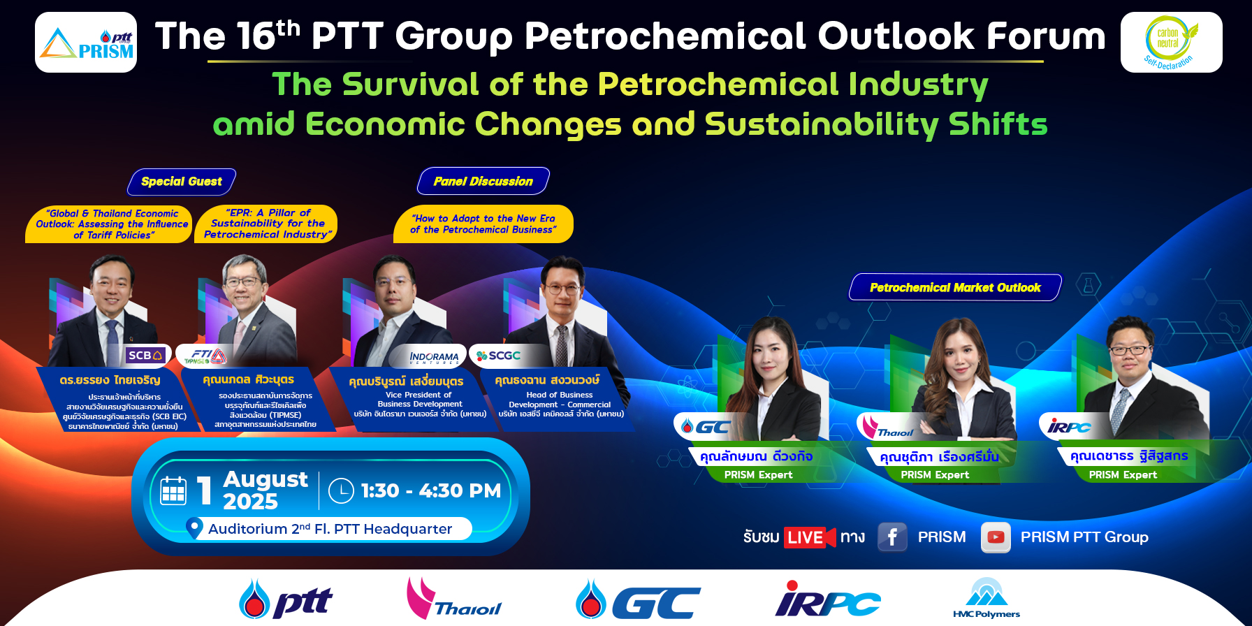 At PRISM Facebook/ Youtube: PRISM PTT Group และ ห้องประชุม PTT Auditorium Floor 2